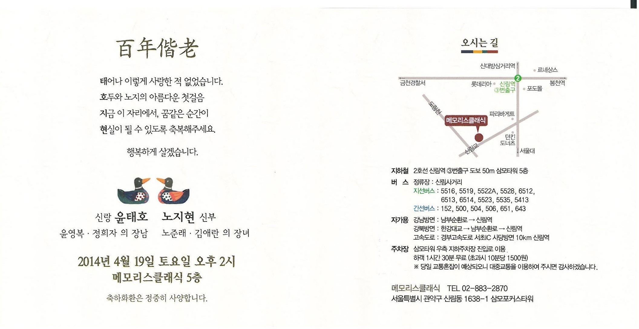 윤영복 기장님 장남 결혼 - 2014/04/19(토)14:00 서울 메모리스클레식5층 14-04-14 13:04