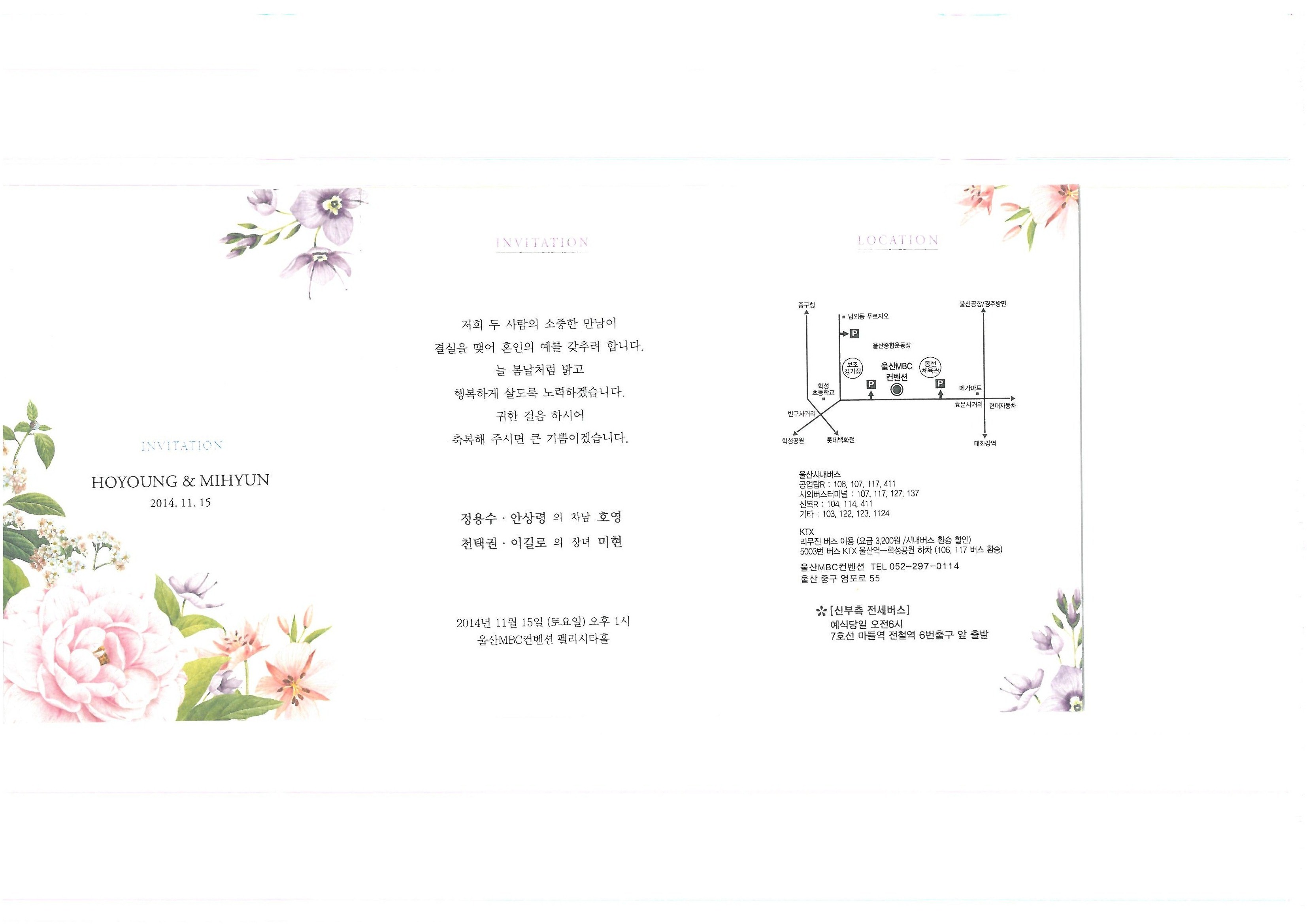 용연 정용수기장님의 차남 호영이 결혼합니다.