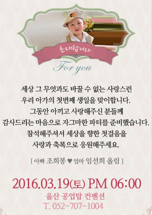 조희봉 과장의 아들 유현이가 첫번째 생일을 맞았습니다. 16-03-10 17:39