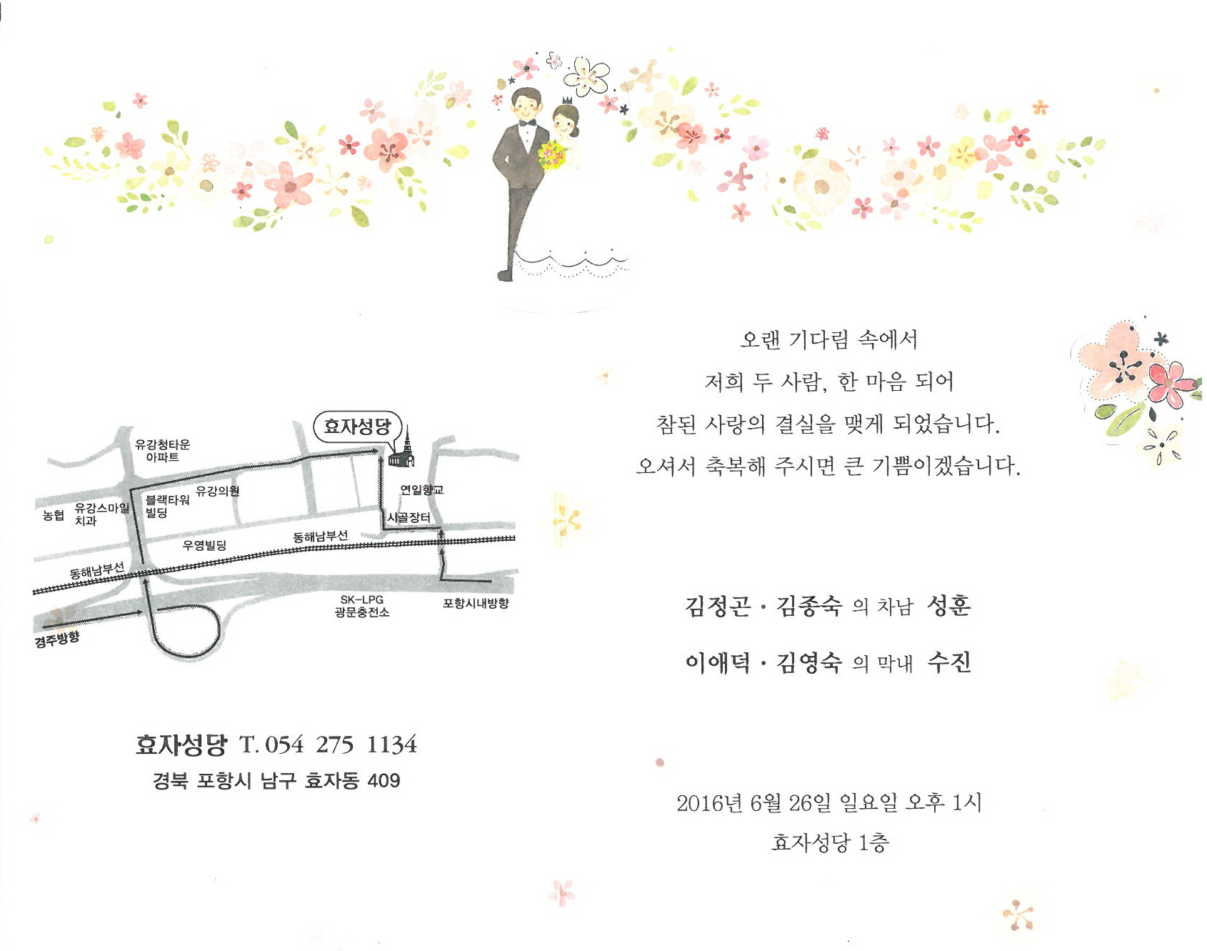 축하합니다. 온산공장 김정곤 부장님의 차남 김성훈씨가 결혼합니다