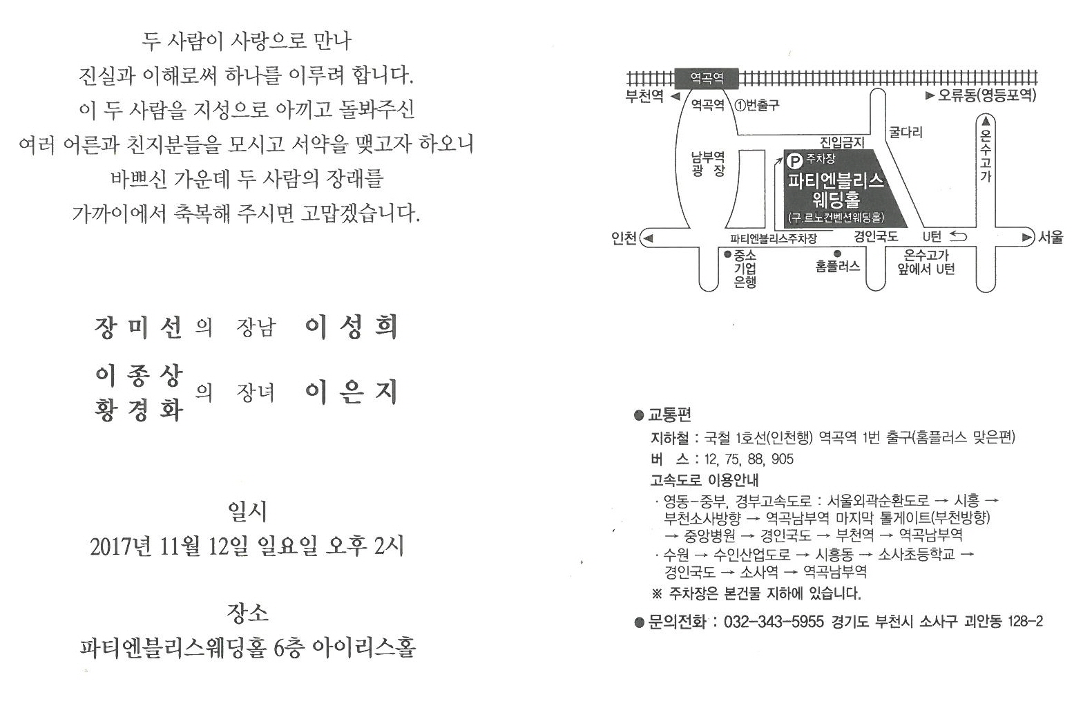 축하합니다 이종상 차장의 장녀 이은지씨가 결혼합니다. 17-10-20 13:31